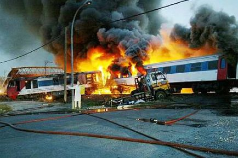01112011 Tiada kematian dilaporkan namun lapan orang cedera dalam letupan besar akibat pelanggaran antara keretapi dengan sebuah lori tangki minyak di hadapan Lapangan Terbang Antarabangsa Kota Kinabalu. Jabatan Keretapi Negeri Sabah Kota Kinabalu. Menterinya Datuk Peter Anthony berkata pasukan penyiasat adalah dari Jabatan Siasatan Jenayah Polis dan bedah siasat juga telah dilakukan.